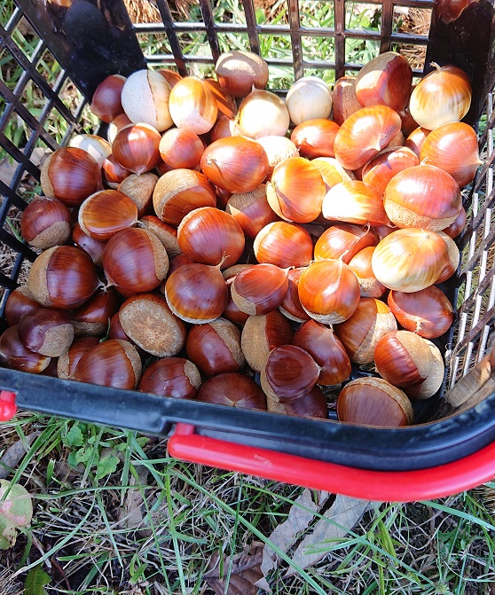 落ちてる栗だけじゃなく(イノシシが食べてるのがある)木についてるのも