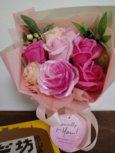 愛媛からの帰りだったみたいで坊ちゃん団子とソープフラワー