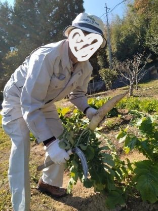 夫が育てた大根、白菜、柚子、小松菜、里芋を収穫して(夫が)早めに帰宅しました。